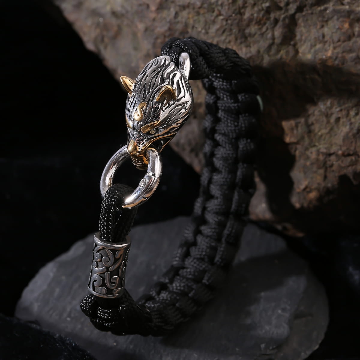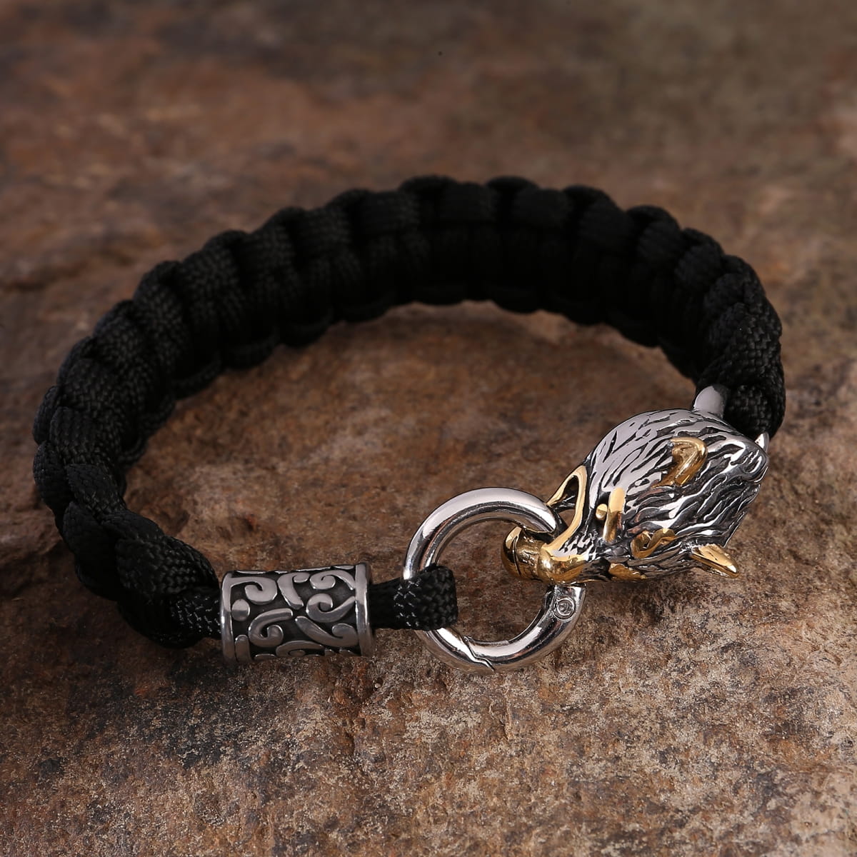 Bransoleta z wilkiem to wyjątkowa ozdoba na męski nadgarstek. Każdy z jej elementów ma podkreślić surowy, zdecydowany charakter i siłę. Całość powstała z paracordu w kolorze czarnym, o ciekawym splocie, pozostałe detale wykonano ze stali. Jej wyjątkowy urok podkreśla wizerunek wilka. Fenrir jest popularnym motywem w mitologii skandynawskiej i stanowi symbol siły. Ta bransoleta w stylu Wikingów to doskonały dodatek do każdego stroju, ale też ciekawy pomysł na prezent.