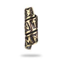 Nietuzinkowy runiczny koralik na cieńszy warkocz lub pasmo brody. Zamiast tradycyjnej formy przypomina zwinięty zwój zapisany runicznym językiem. Świetna ozdoba dla miłośnika skandynawskiego klimatu, biorąc pod uwagę, że Wikingowie też otaczali się runami i bez wątpienia mieli długie brody. Dodatkowy smaczek stanowi materiał wykonania. Brązowe, męskie ozdoby znane są od czasów Troi i nic nie straciły na stylu mimo upływu tysiącleci. Rzymianie i Wikingowie znali takie obręcze na nadgarstki i ramiona – teraz także na brodę.