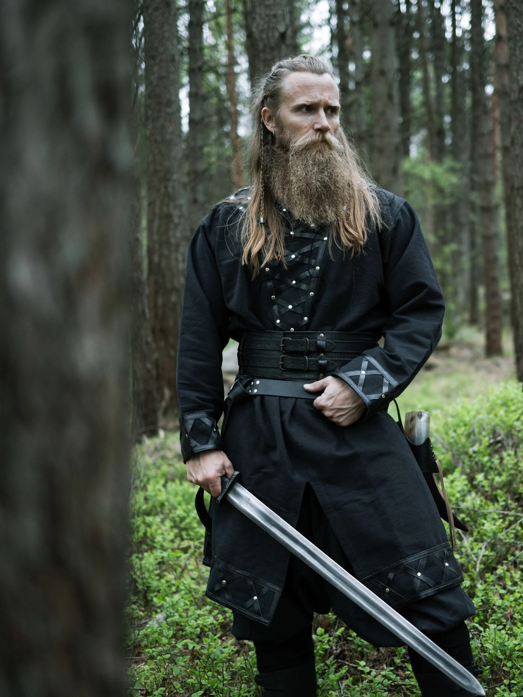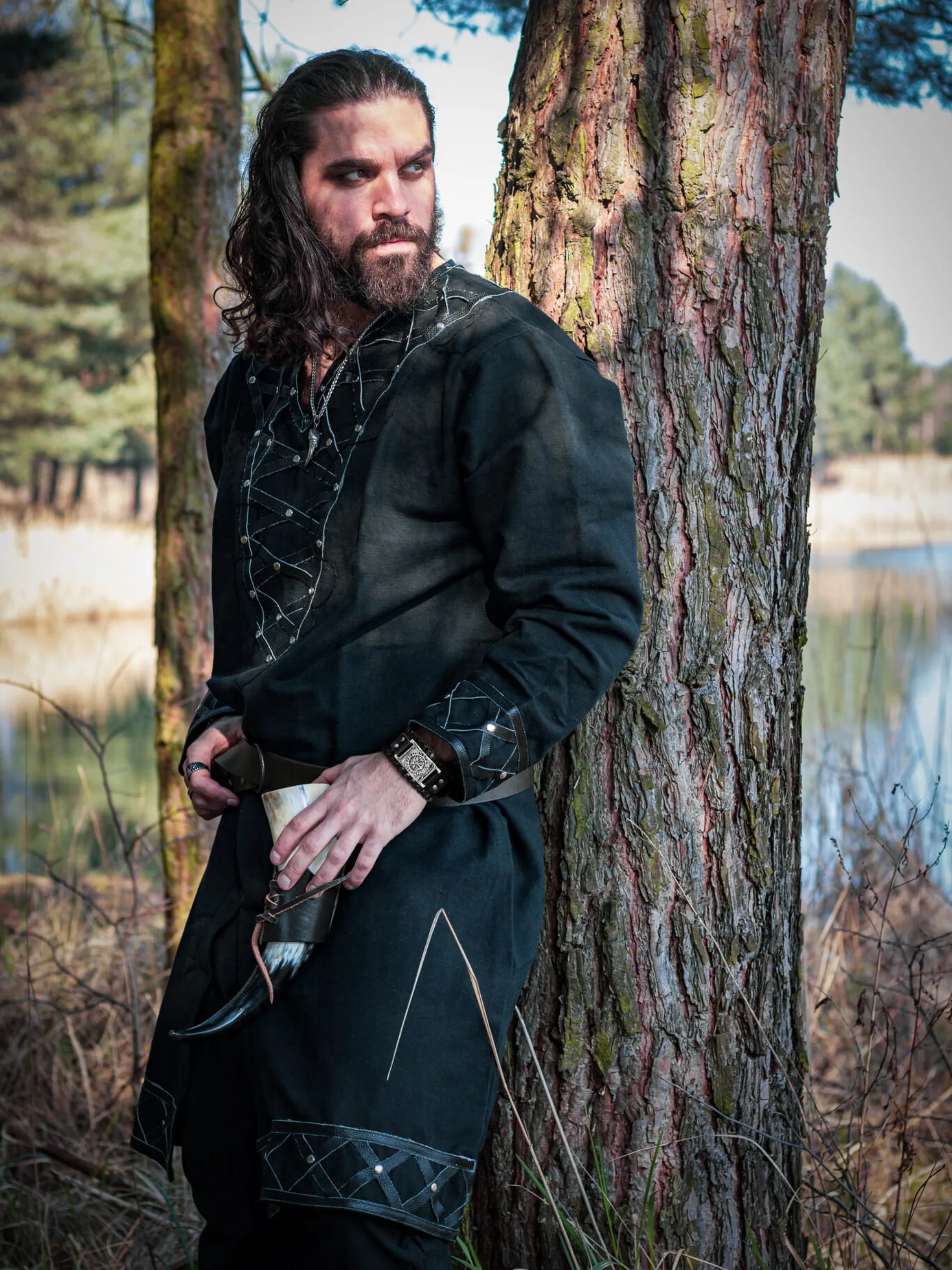 Mało który męski strój robi takie wrażenie, jak czarna tunika! Pewnie to dlatego tak ubierał się zarówno Geralt z Rivii, jak i straż Gondoru… Jeśli szukasz przykuwającego uwagę stroju, który umożliwi Ci udział w historycznych rekonstrukcjach czy średniowiecznym cos-play, to już go znalazłeś. Autentyczna skóra przy rękawach, dekolcie i na krawędzi sprawia, że to coś więcej, niż przebranie. To autentyczny ubiór dokładnie jak sprzed wieków, który powinien przetrwać niejedną burzę, bitwę i… imprezę. Kto jeszcze chodził w czarnej tunice? Krzyżacy, Little Finger z „Gry o Tron”, a nawet Luke Skywalker… Inspiracji Ci nie zabraknie…
