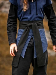 Jego imponująca długość oraz szerokość dają dużą swobodę wiązania i noszenia. Pas można owinąć kilkukrotnie wokół talii, tworząc mocne, wyraziste przewiązanie, a długie końce pozostawić luźno opadające wzdłuż sylwetki. Dzięki temu staje się nie tylko praktycznym elementem stroju, ale również mocnym akcentem, który przyciąga wzrok i nadaje całości historycznego, surowego wyrazu.